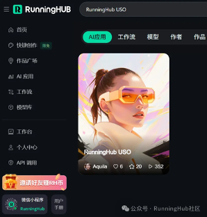 PC: Search for “RunningHub” in your browser, go to the official website, and use the search bar to find “RunningHub USO”. Find the template and click to enter.